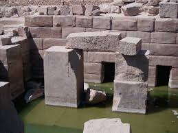 Otra evidencia más de que un aluvión de lodo cubrió toda la zona es que en la actualidad este templo suele estar inundado por las aguas freáticas.La otra curiosidad es la forma en que está construido este templo, con piedras perfectamente encajadas y de formas no necesariamente rectangulares ni uniformes.